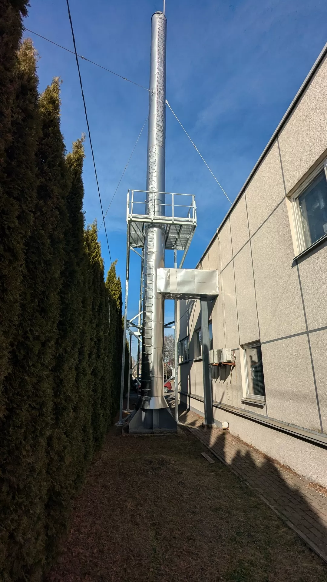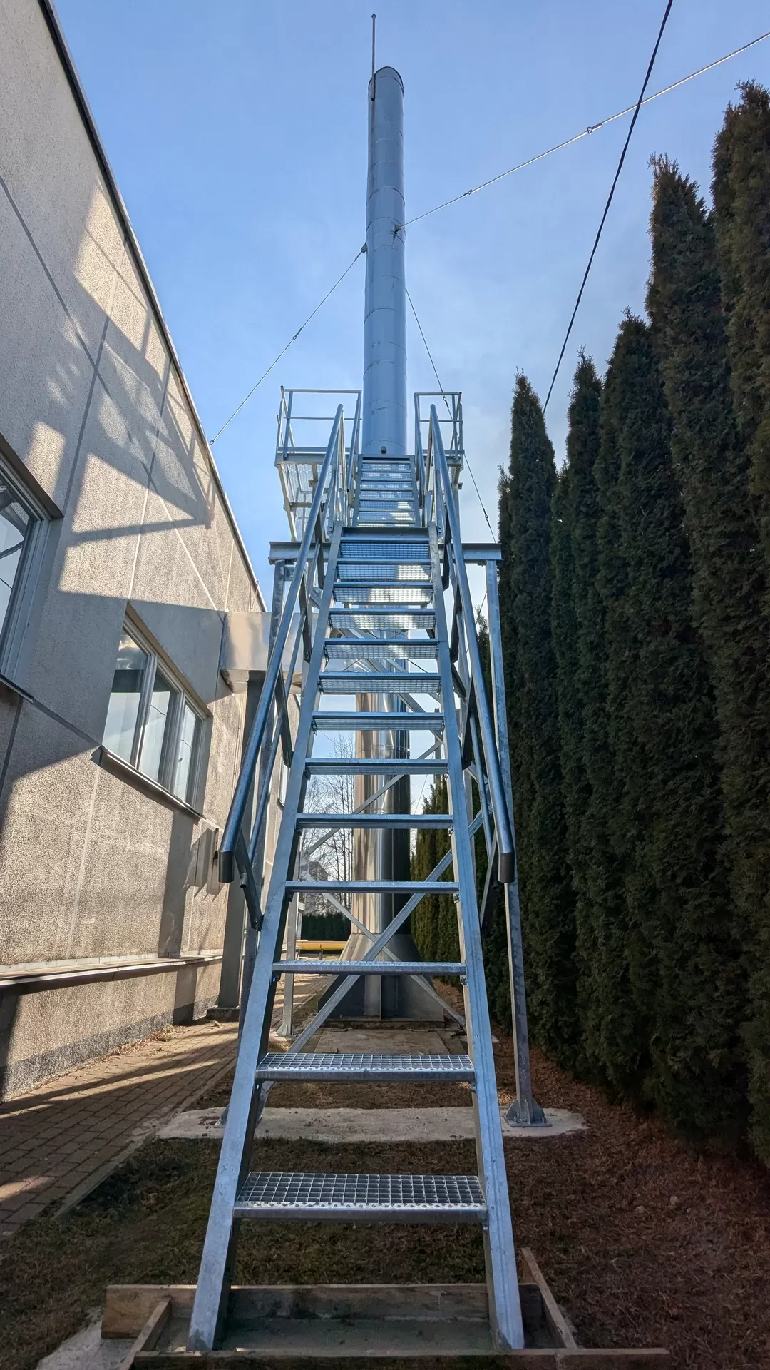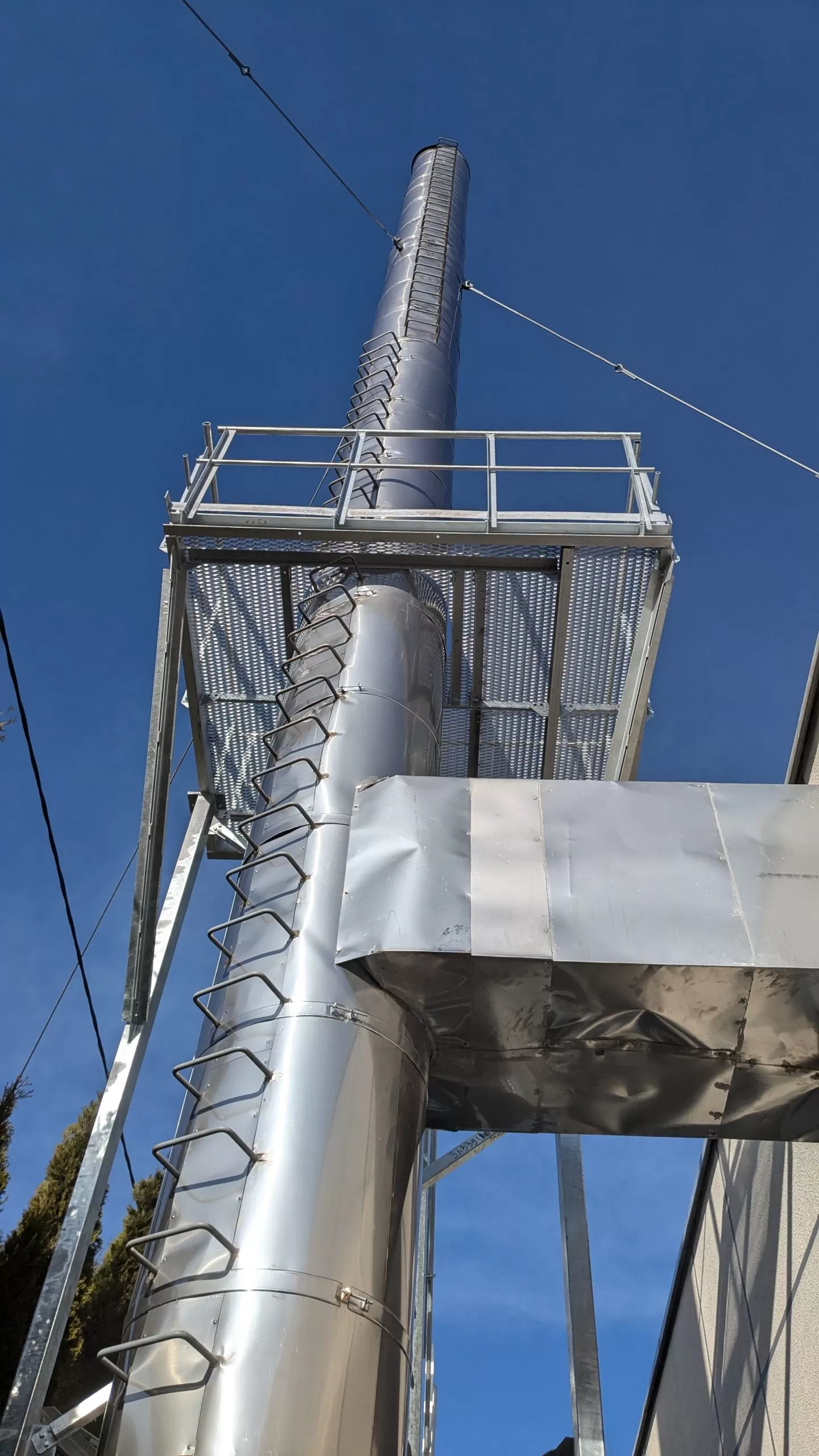 Размеры площадки для отбора проб задают с учетом нахождения минимум 3–4 человек и оборудования. Несущая способность металлоконструкции – от 300 кг. Свободная площадь должна быть достаточной, чтобы работать с пробоотборными зондами и устройствами для измерений. Ширину площадки рассчитывают, суммируя 1,5 м с размером наружного диаметра газохода/трубы. Это обеспечивает удобное подключение технических средств.